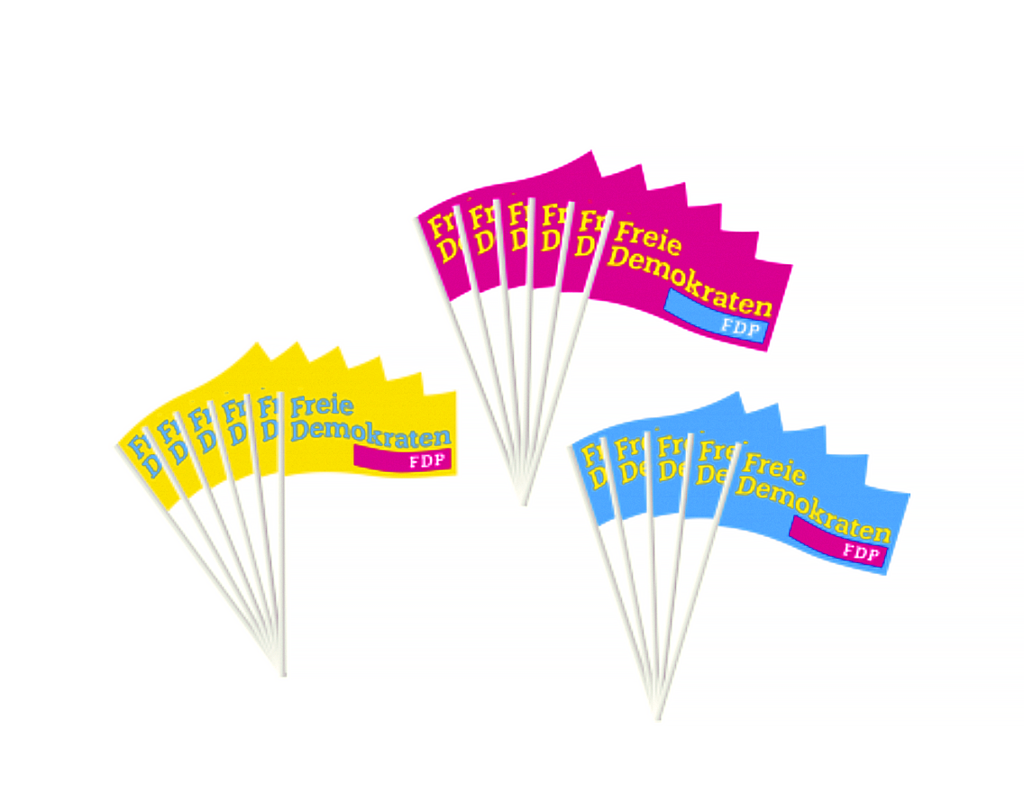 Papierfähnchen 11,5x24cm mit Papierstab, 3-farb. FDP-Logo, farblich gemischt