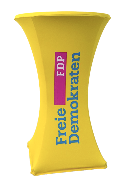 Husse für Tischplatten mit rundem 70 cm oder 80 cm Durchmesser, Tischhöhe 110 cm, 185g/qm Material ist Flammhemmend und besteht zu 100% aus Polyester