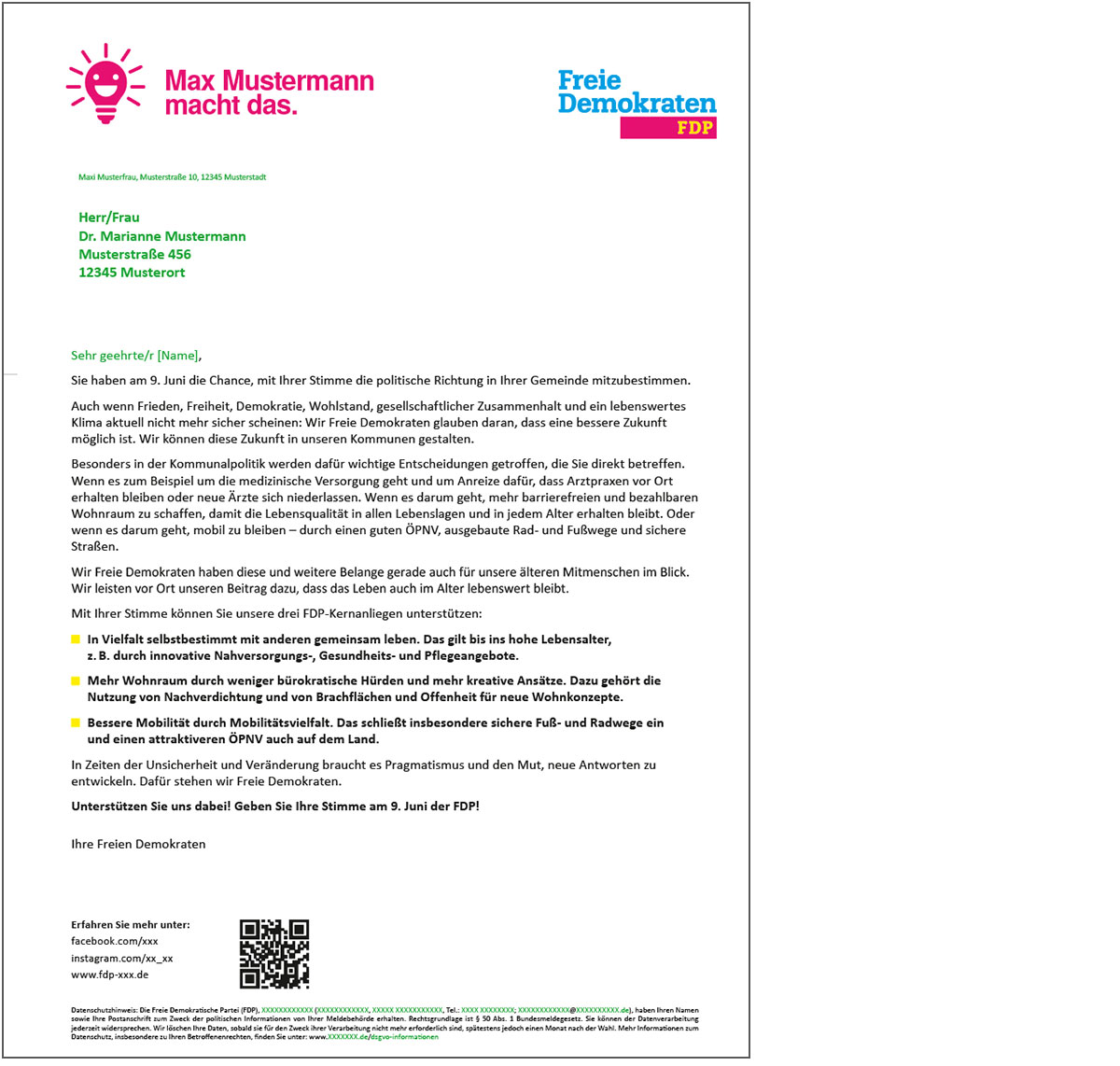 Mit diesem Brief erreichen Sie die über 60-jährigen Wählerinnen und Wähler in Ihrem Wahlkreis. Bitte fordern Sie die entsprechenden Adressen von der Stadtverwaltung ab.